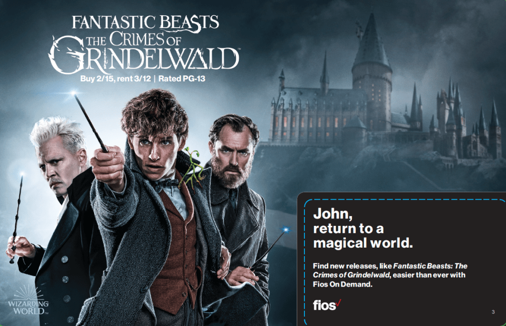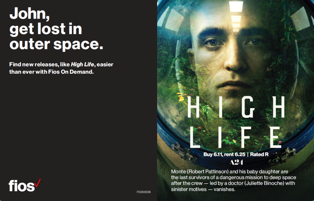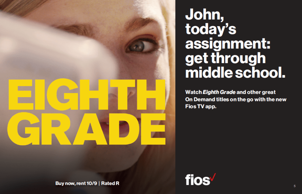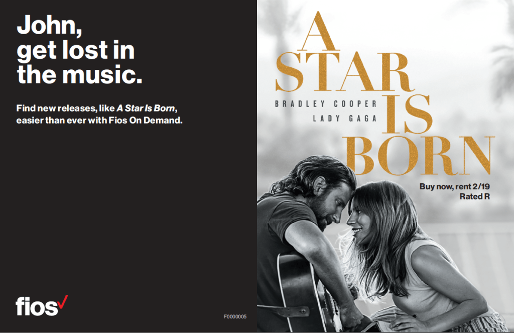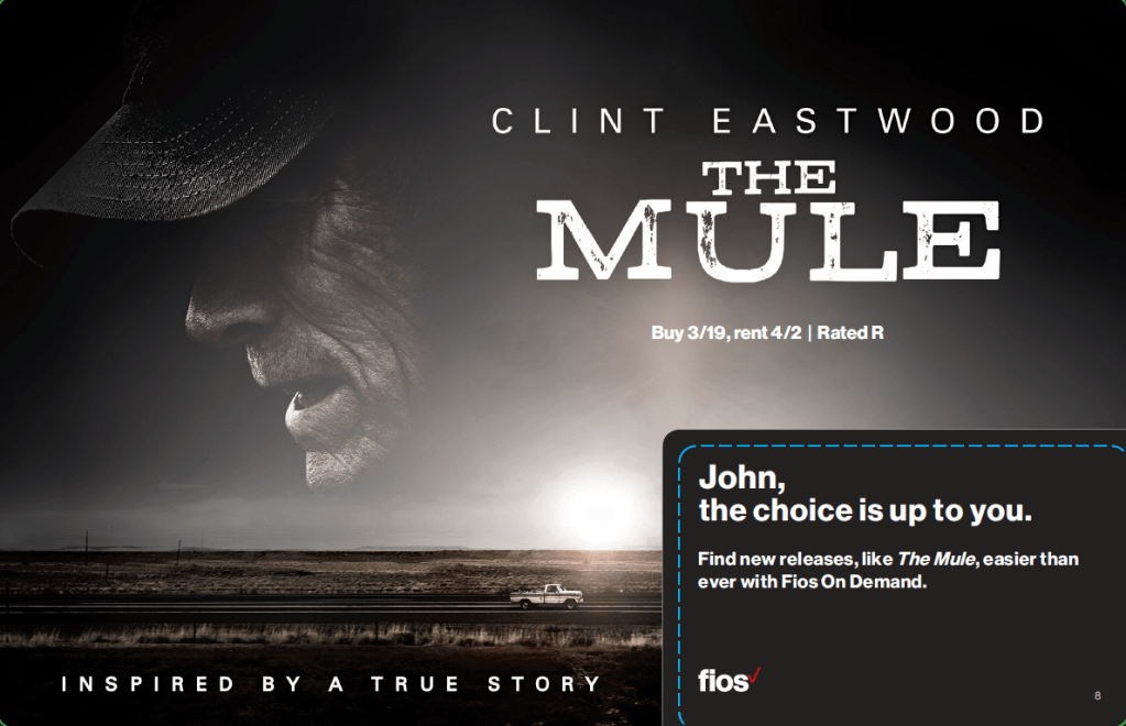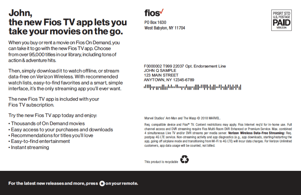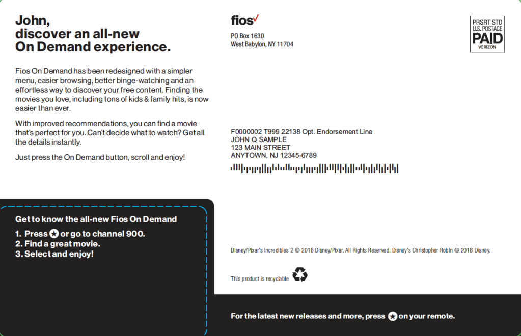 Brief: Create a postcard with a catchy headline that highlights Verizon’s latest On Demand movies.