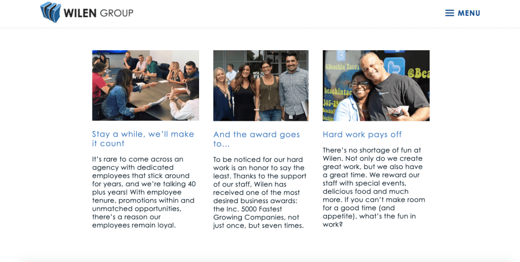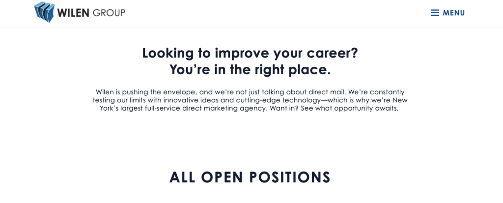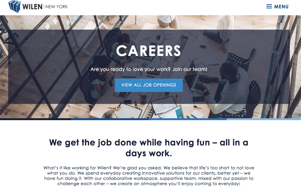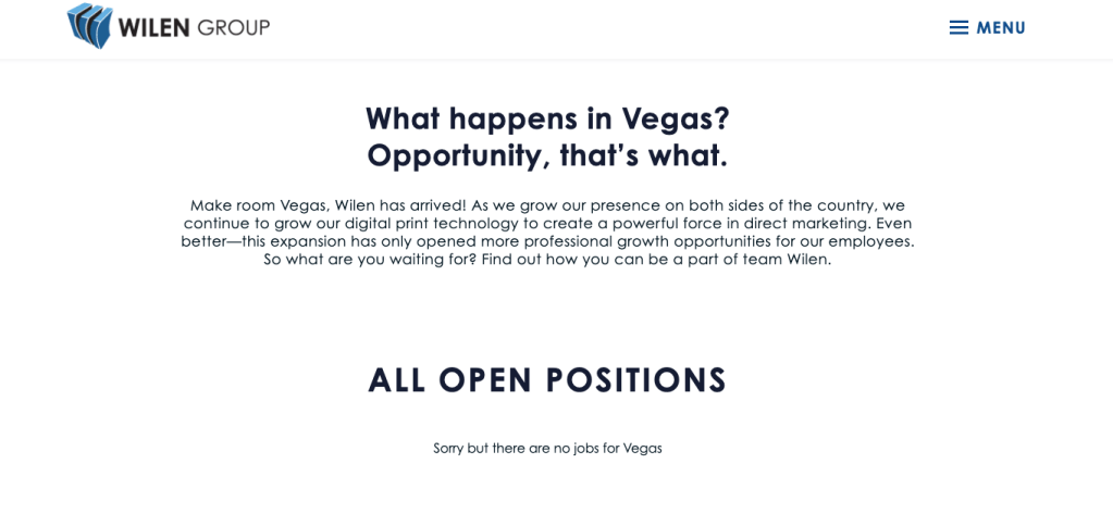 I was responsible for a large portion of The Wilen Group’s social presence. For this specific assignment, I revamped the website copy to have a more “fun and friendly” tone for the New York, Florida and Las Vegas career pages.